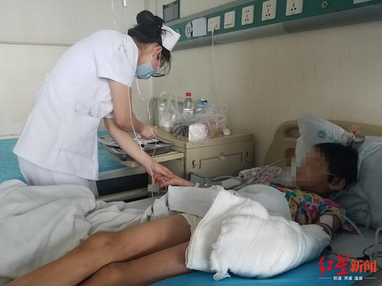 事发:8岁女孩断掉三指,目前手术成功 据泸州《川江都市报》此前报道,视频中被村民指证的李某才是泸州市纳溪区合面镇大石村10社村民,膝下有一双儿女,大女儿李某燕未满9岁,小儿子7岁。因妻子韩远珍在广东打工,家里仅他一人带着儿女生活。近些天正是农忙时节,李某才和一位亲戚一起,正忙着收稻谷。21日下午5点多,他在家用猪草机打猪草,李某燕和弟弟在一旁玩耍,突然李某燕碰了一下猪草机。李某才说,“那个机器快得很,手杆都切得断。”事后,李某才扛着女儿,急忙往乡村医生徐某处跑,准备让其帮忙止血。 经徐某查看,李某燕左手食指被割破,中指、无名指、小指均受伤,其中两根指头皮未断,一根指头断掉一截不知所踪。徐某意识到李某燕伤情严重,建议李某才联系120到大医院救治。大概过了40分钟,120救护车赶到,医护人员与李某才急忙回家寻找断指。晚上7点多,救护车将李某燕送至西南医科大学附属中医院救治。 李某燕在医院接受治疗